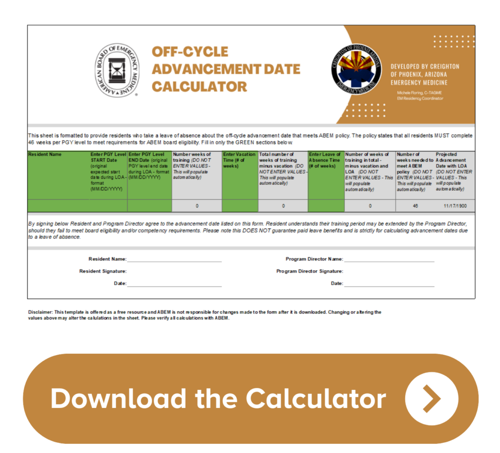 Thank you to Michele Floring, C-TAGME, EM Resideny Coordinator at Creighton of Phoenix, Arizona Emergency Medicine for developing and sharing this resource.