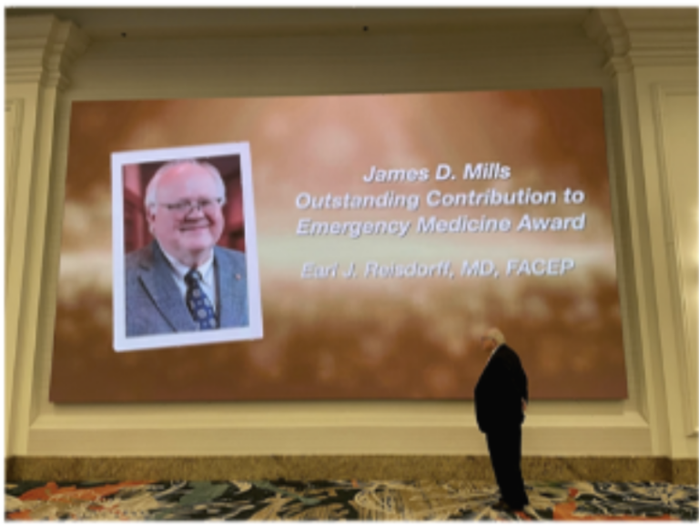 We are honored to announce Earl J. Reisdorff, M.D., Executive Director of the American Board of Emergency (ABEM) recently received the James D. Mills Outstanding Contribution to Emergency Medicine Award