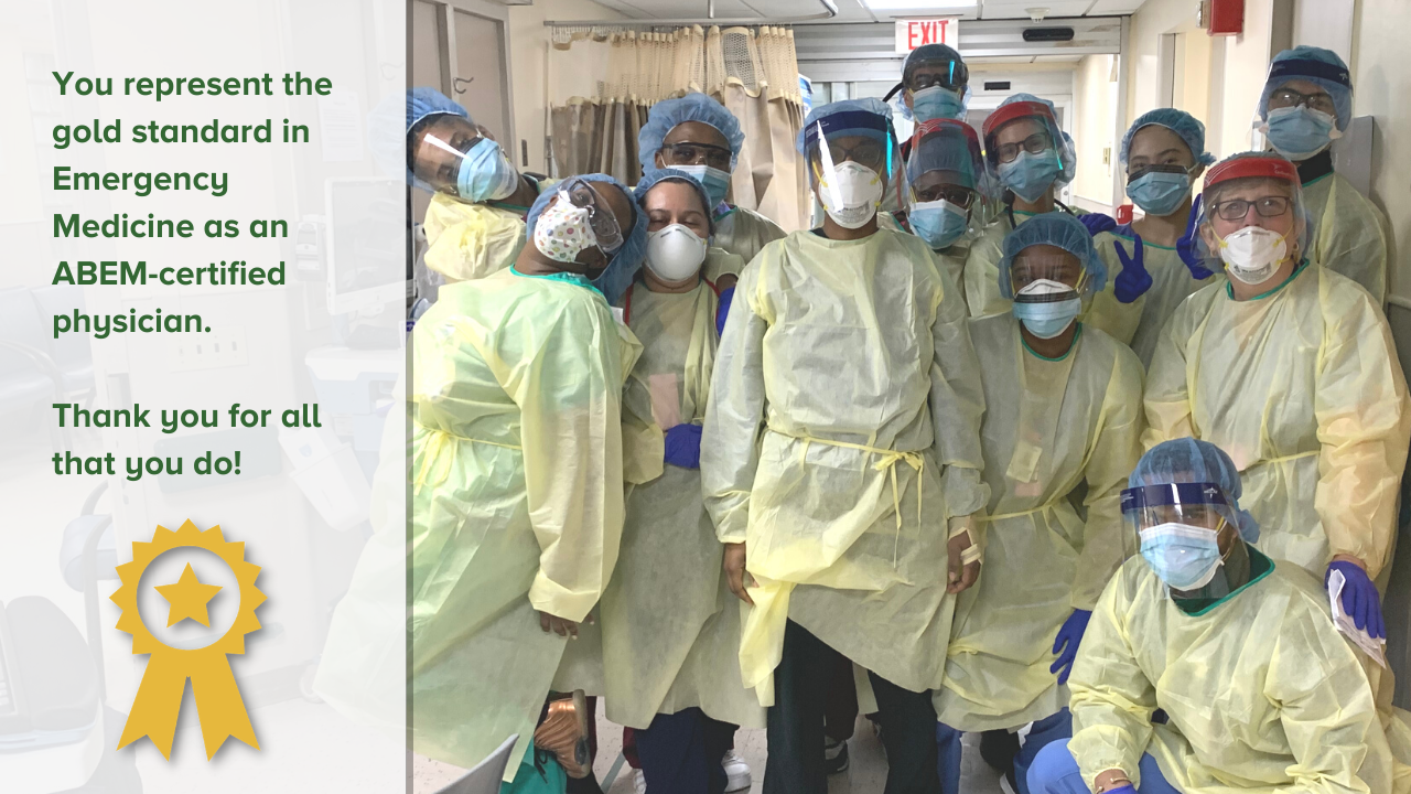 ABEM certification provides recognition as a specialist, added compensation, practice opportunities, and professional pride. ABEM is committed to ensuring that its certification remains the “gold standard” in the specialty of Emergency Medicine. ABEM-certified physicians serve a valuable and irreplaceable clinical role in the care of the critically ill and injured. We believe and support that the delivery of emergency care is best led by physicians with EM training, experience, and ABEM certification.