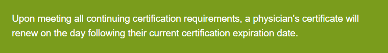 For physicians with 10-year certifications, you have requirements due December 31, 2024: