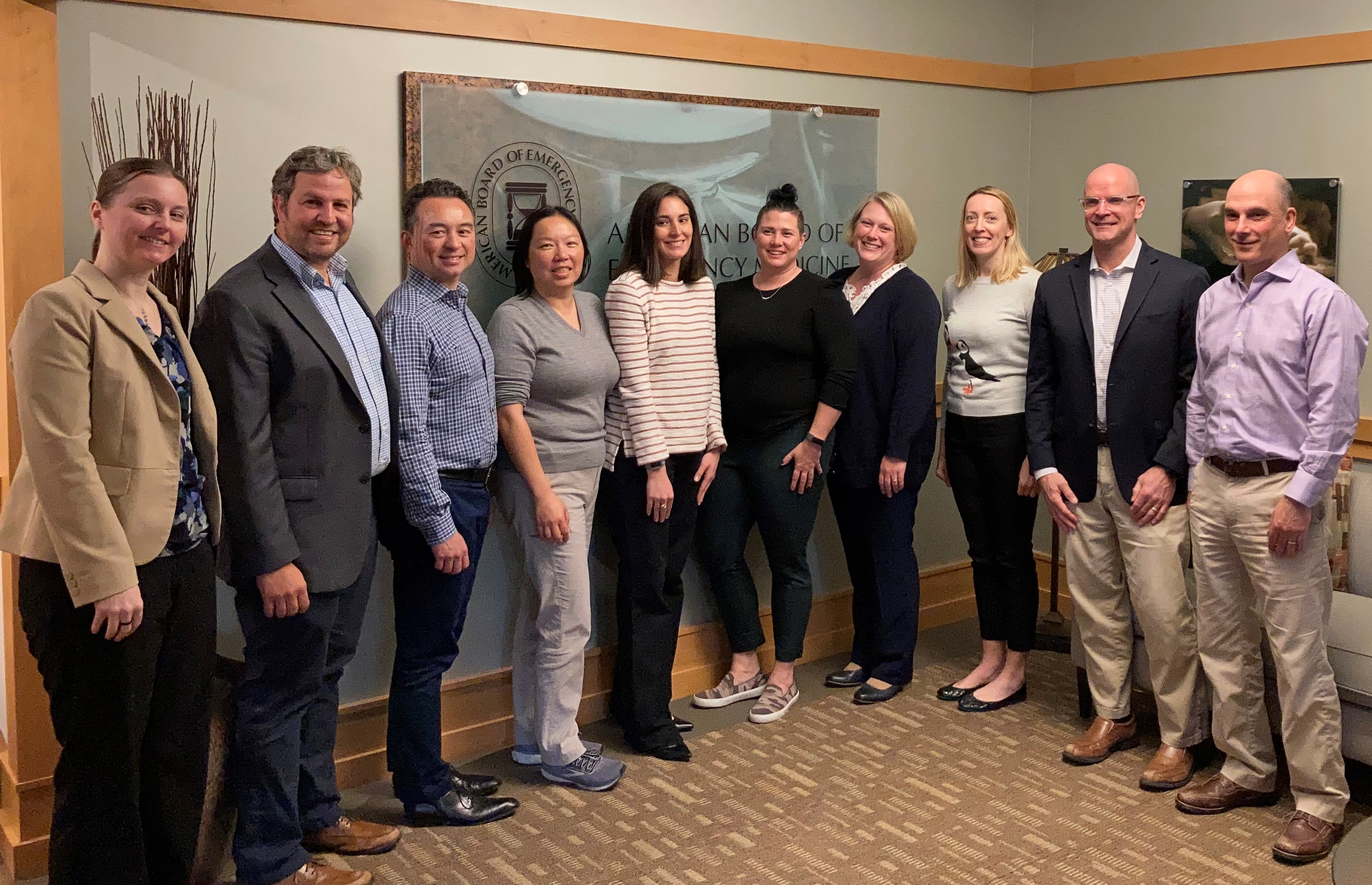Pictured left to right: Sabine Gifford, CAE, Executive Director, Joshua Guttman, M.D., Lawrence Haines, M.D., Teresa Liu, M.D., Alexis Salerno, M.D., Creagh Boulger, M.D., Sara Damewood, M.D., Chair, Christine Butts, M.D., John Bailitz, M.D., Romolo Gaspari, M.D., EUFAC Founding Director. Not pictured: Robert Strony, D.O., Kristin Carmody, M.D.